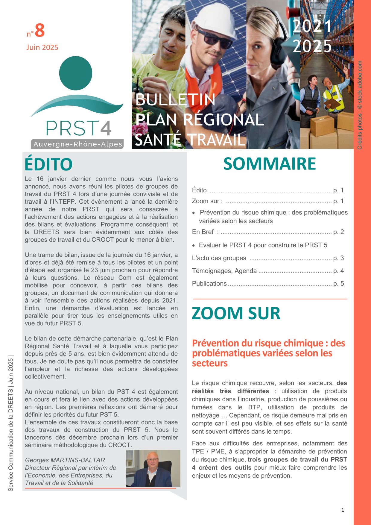 Le 8e numéro du bulletin d’information du 4ème Plan Régional Santé Travail Auvergne – Rhône-Alpes est paru.