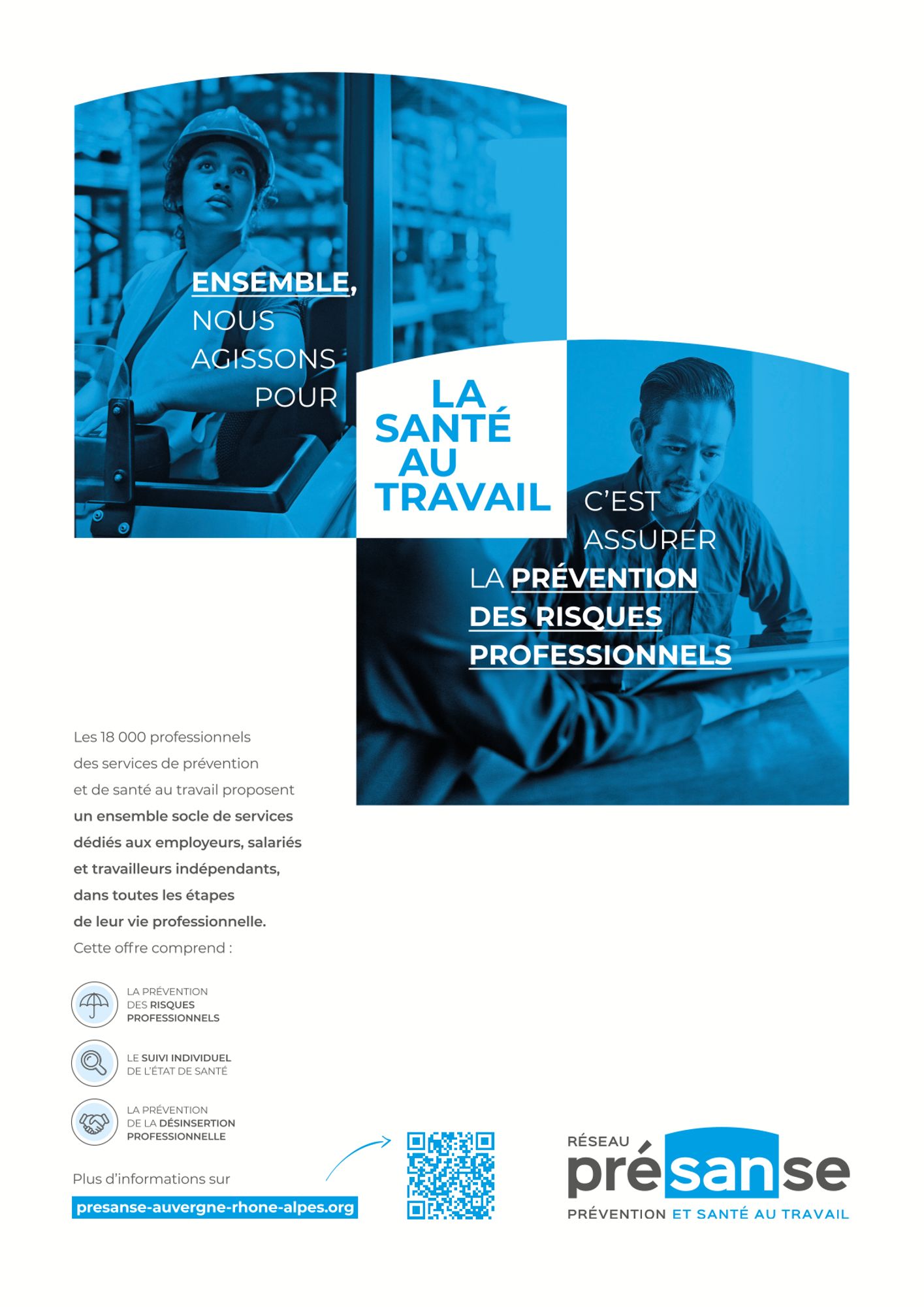 Les 18 000 professionnels des services de prévention et de santé au travail proposent un ensemble socle de services dédiés aux employeurs, salariés et travailleurs indépendants, dans toutes les étapes de leur vie professionnelle. Voici le premier volet : la prévention des risques professionnels.