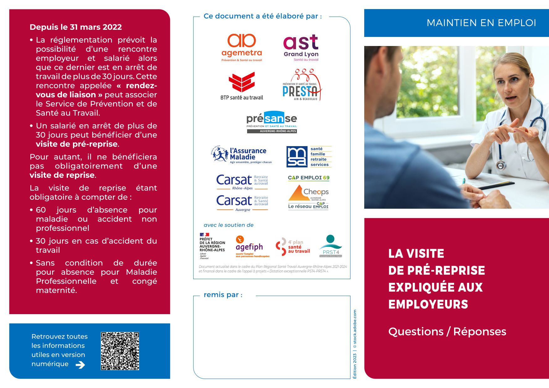 Cette action, co-construite par plusieurs acteurs de la santé au travail et du maintien en emploi du Rhône, a reçu le soutien financier de l’Etat et de l’Agefiph et a récemment été relayée aux 11 000 médecins inscrits au Tableau de l’Ordre des Médecins du Rhône.