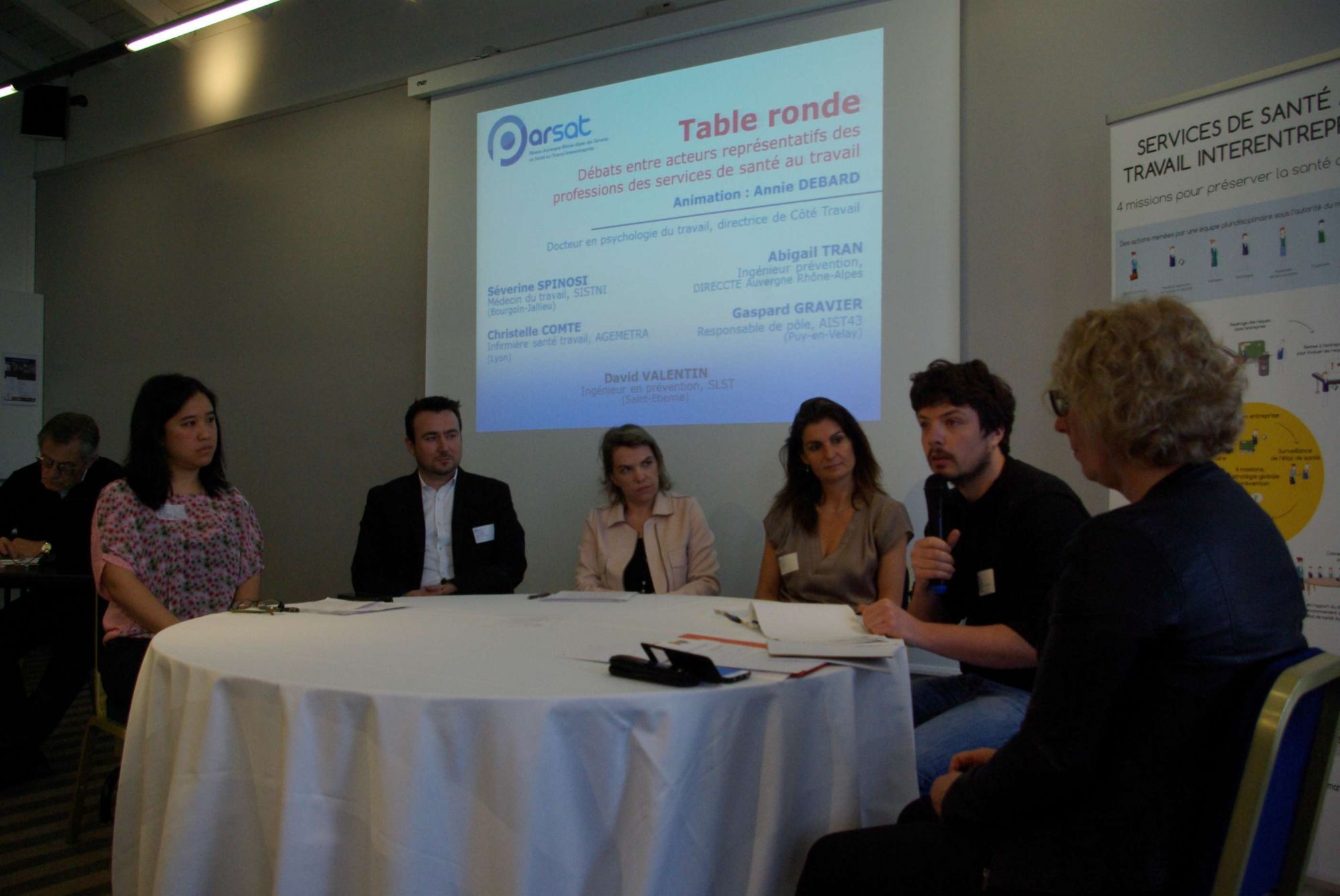 Bernard Crouzet, Président de PARSAT, a introduit la journée avant de laisser place aux débats dans le cadre d'une table ronde composée d'acteurs représentatifs des professions des services de santé au travail et d'un représentant de la DIRECCTE. Les partipants ont ensuite découvert les résultats de la 1ère enquête nationale sur les démarches de prévention collective des RPS dans les services de santé au travail. La CARSAT avait répondu présent à cette journée et a présenté son positionnement et l’alliance tripartite CARSAT/DIRECCTE/Service de santé.